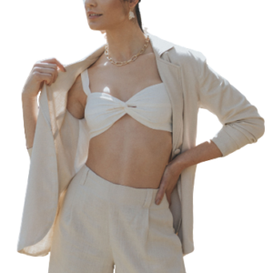 Camisa Cropped em Linho e detalhe amarração frontal.