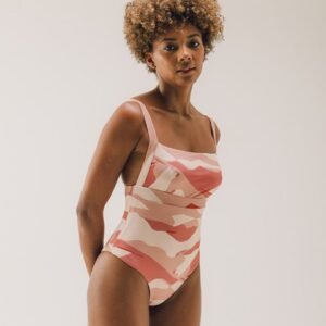 Essa malha é produzida com fibras recicladas de garrafas pets 100% pós-consumo e são certificadas pela GRS (Global Recycling Standard). Para esse biquíni, foram retiradas 6.8 garrafas PET do ambiente.