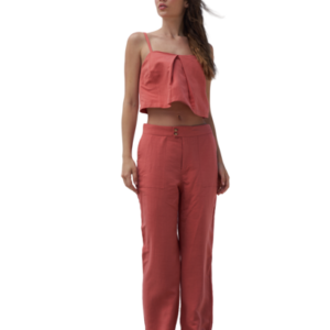 Top com recorte curvado logo abaixo do busto e faixas levemente largas as quais trazem uma simplicidade contemporânea ao design conjunto. Calcinha com recorte nas costas, cobertura médio e acessório de metal personalizado com a logo da marca em banho ônix.