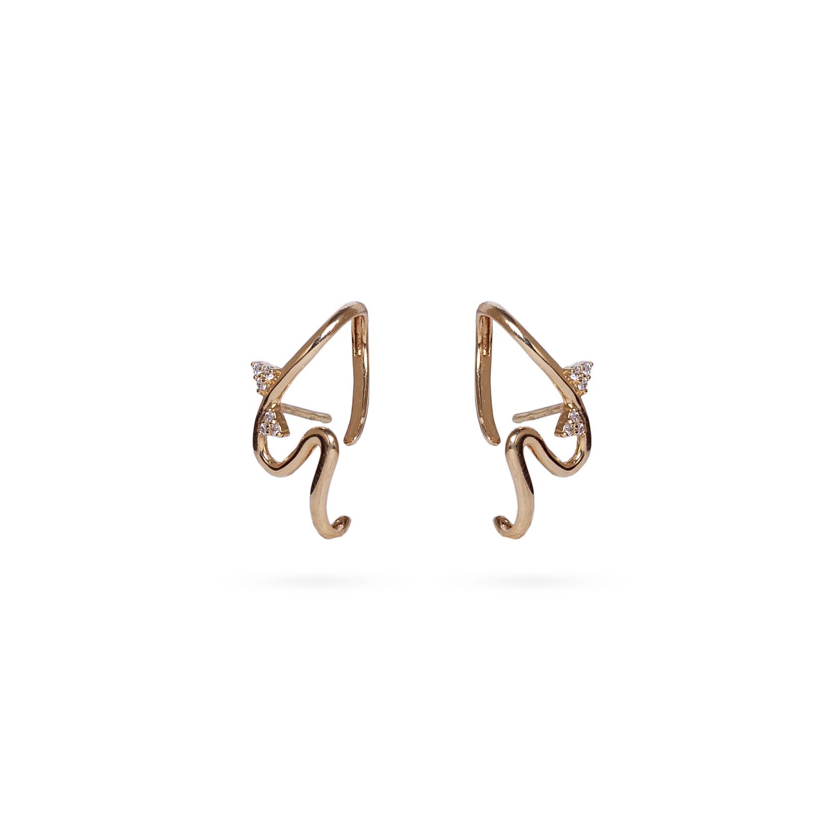 O Brinco Luna é confeccionado em ouro amarelo 18K de upcycling e diamantes lab grown. A peça possui 6 diamantes de 1 ponto cravados em formas de triângulos em cada um dos brincos, totalizando 12 diamantes.