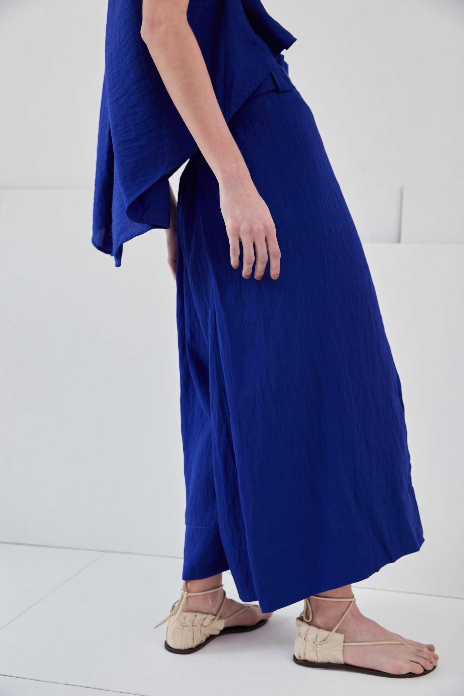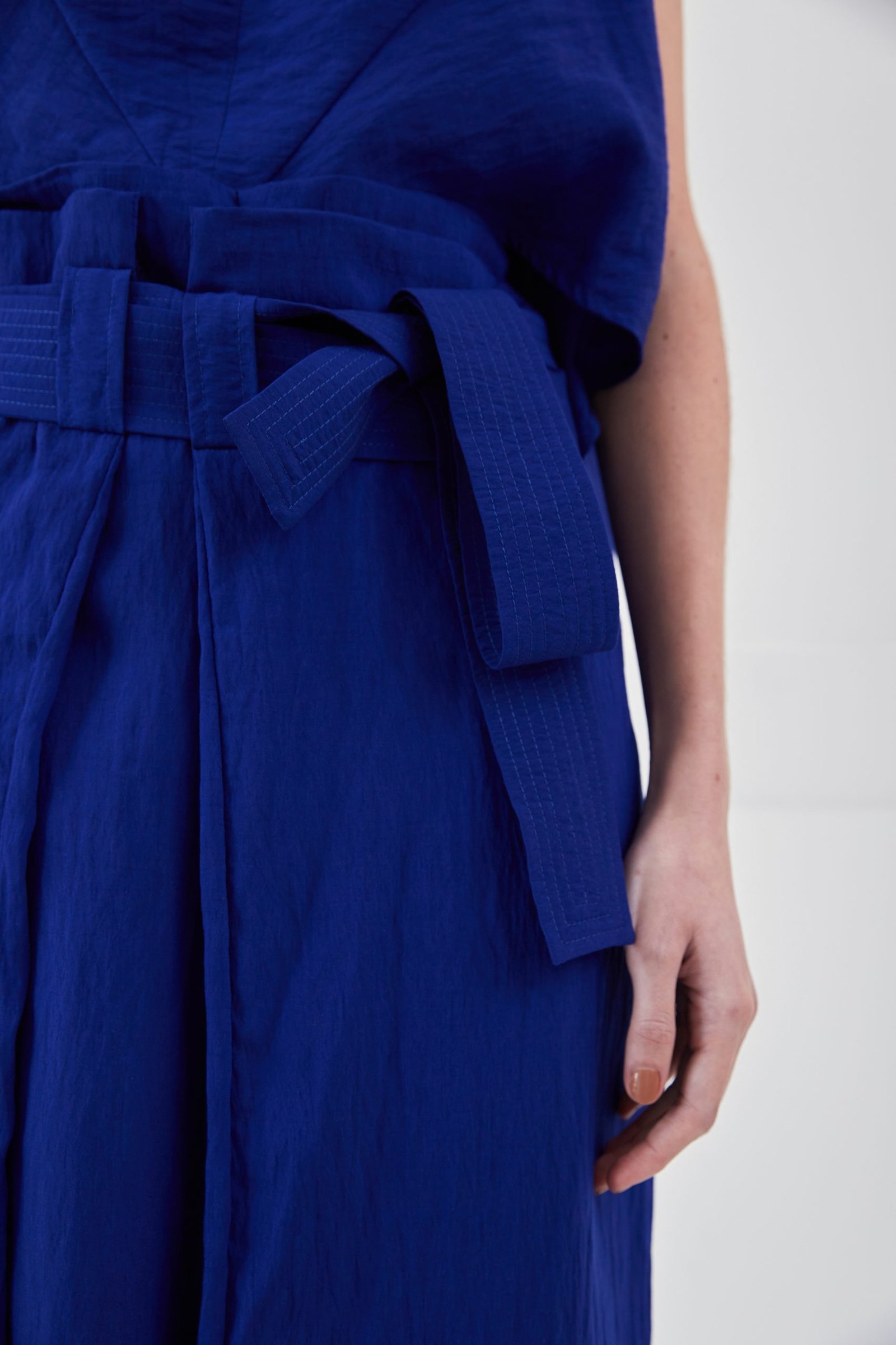 Nossa calça DOBRAS é construída como uma dobradura, em processos de modelagem zero waste, unindo a fluidez do tecido com a estrutura dos recortes. Em shape amplo, possui faixas com detalhes pespontados – que se ajustam à cintura por meio de passadores – e permitem diversas possibilidades de amarração.