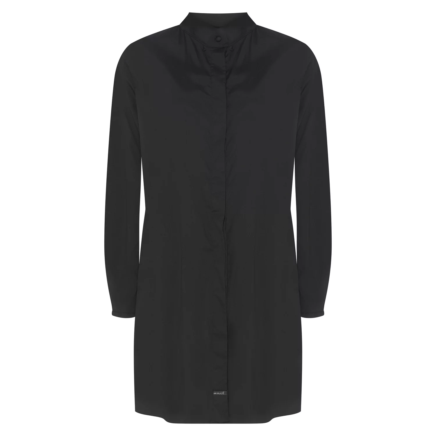 Blusa comprida com abotoamento frontal embutido, com botões de corozo ( semente 100% natural), e botões forrados na gola e mangas.