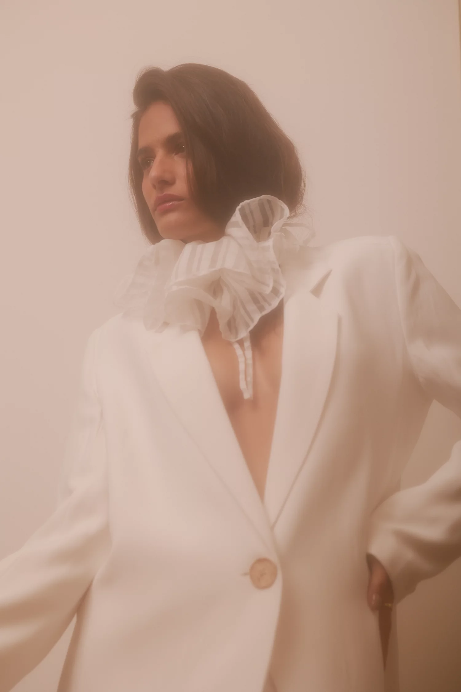 Acessório para ser usado de várias formas, como gola, cinto, e mangas criando efeitos diferentes nas peças. A camisa gola padre Due Tre tem encaixe com aselhas nas mangas e decote , para o uso com as mangas.