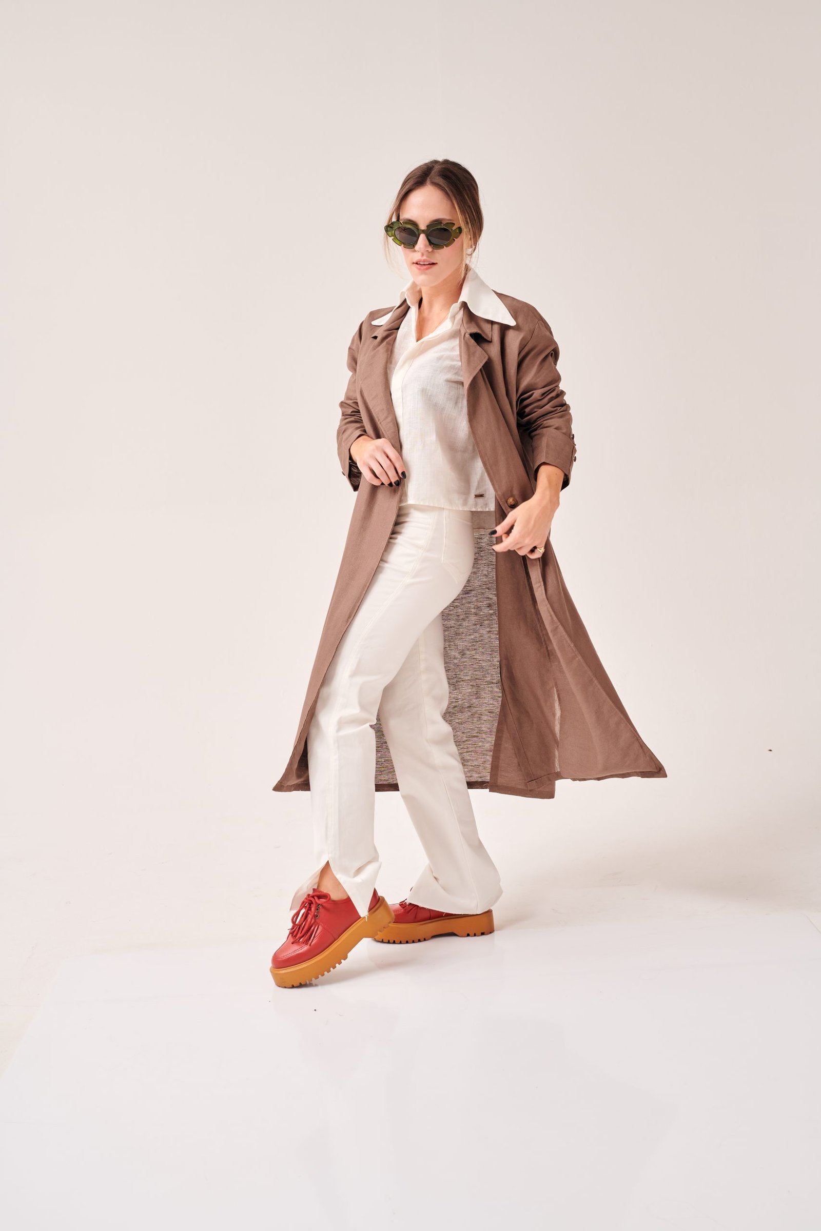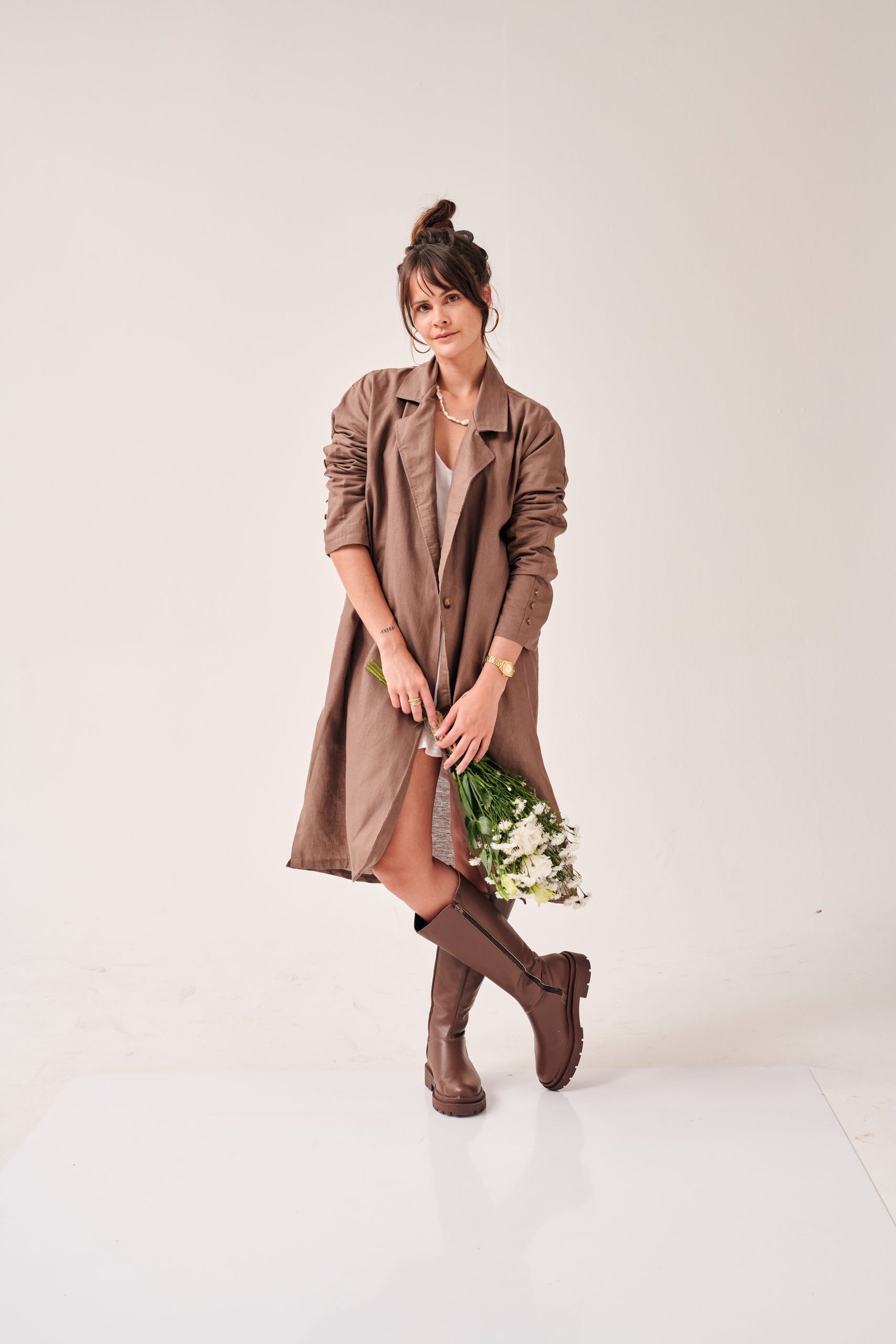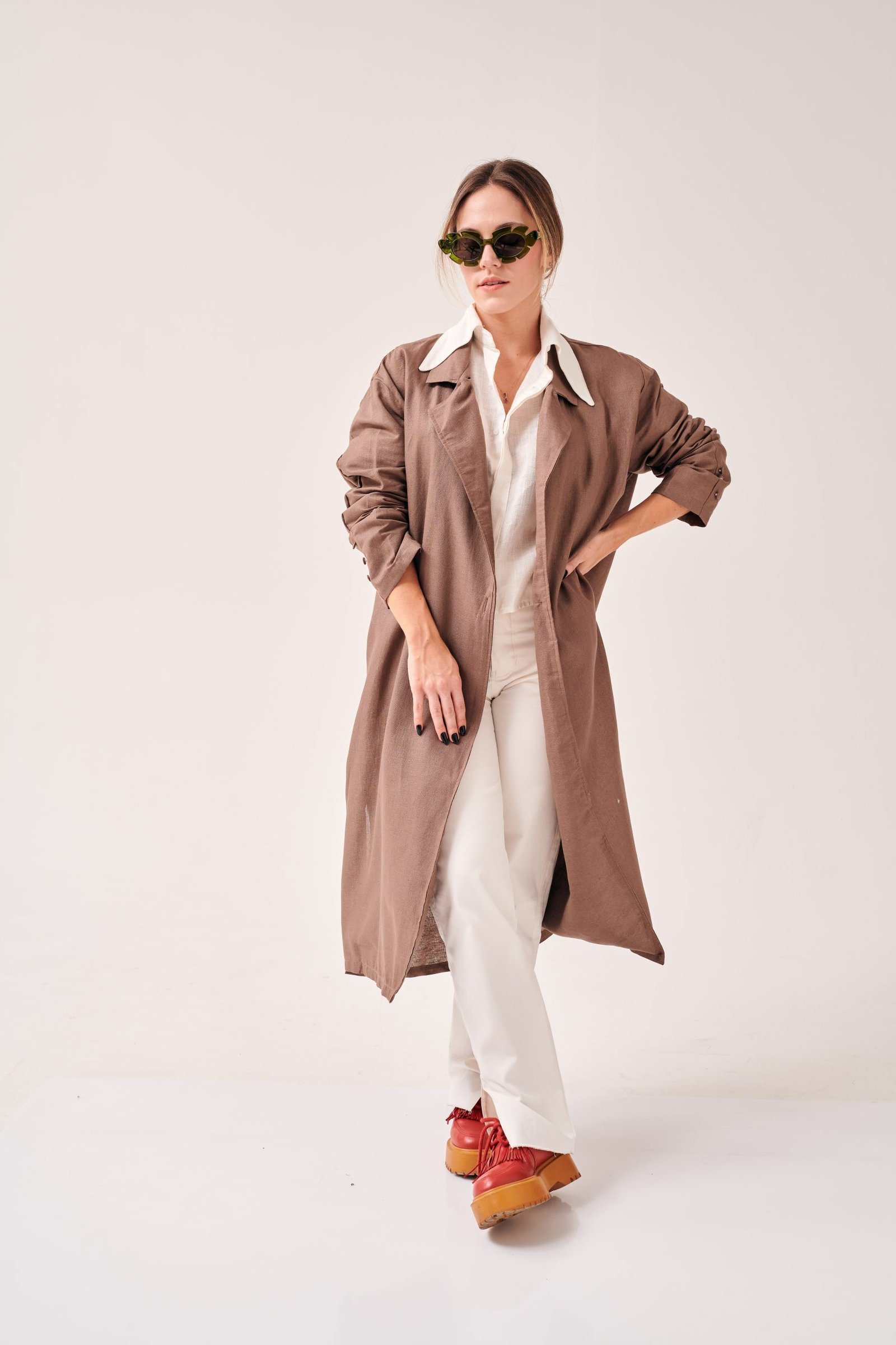 Sobretudo de Linho Puro, com a proposta sem forro para quem ama a elegância de um sobretudo em invernos não tão rigorosos.