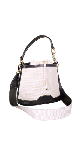 Dimensões: 20 x 23 x 14 cm Fechamento com cordão de algodão 2 bolsos internos Carregado à mão e cruzado, alça de ombro com mosquetão