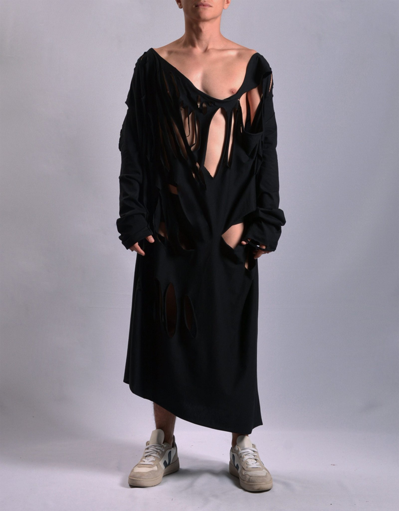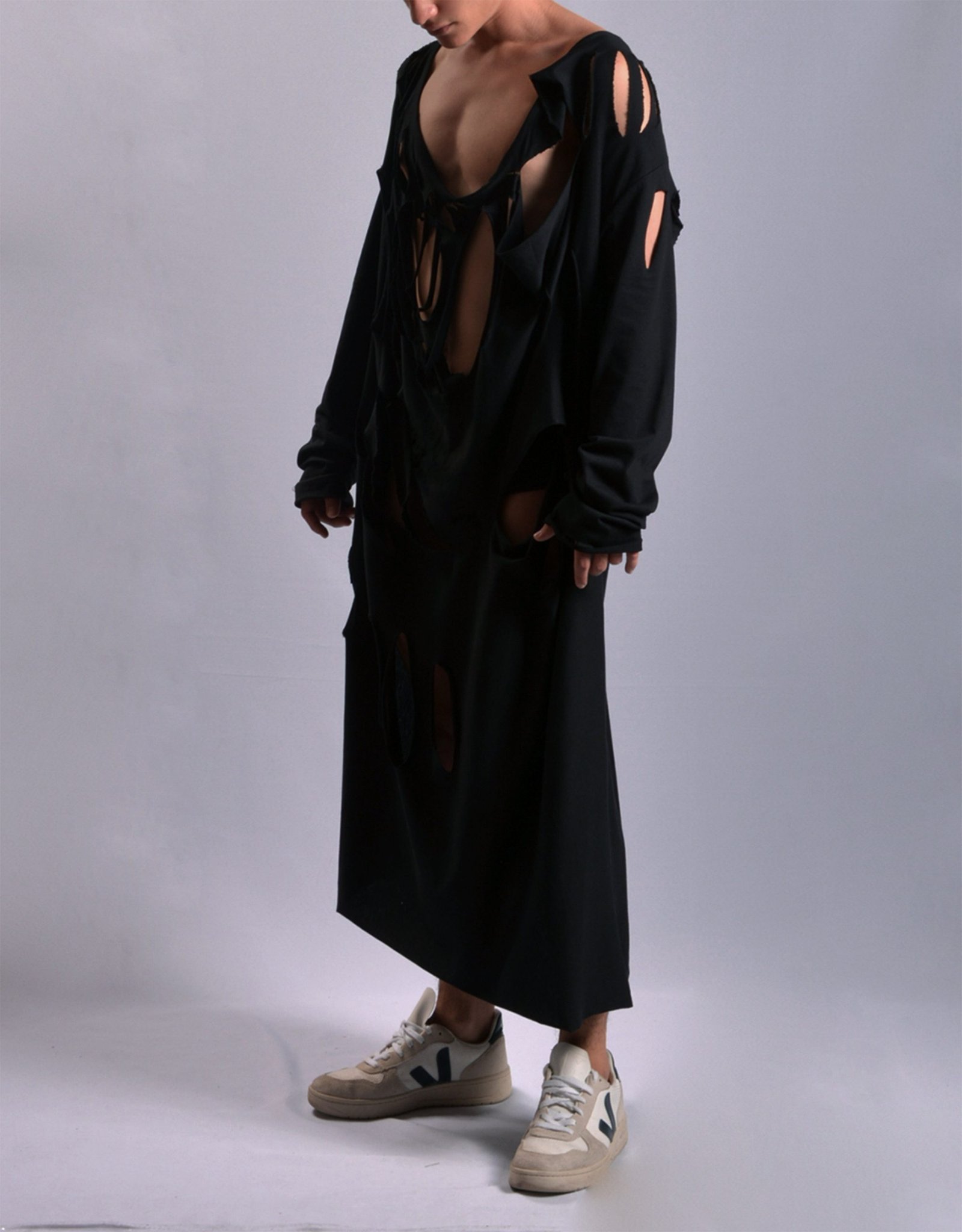 Peça confeccionada em malha de algodão. Possui mangas longas recortes em toda a peça. Sem fechamento.