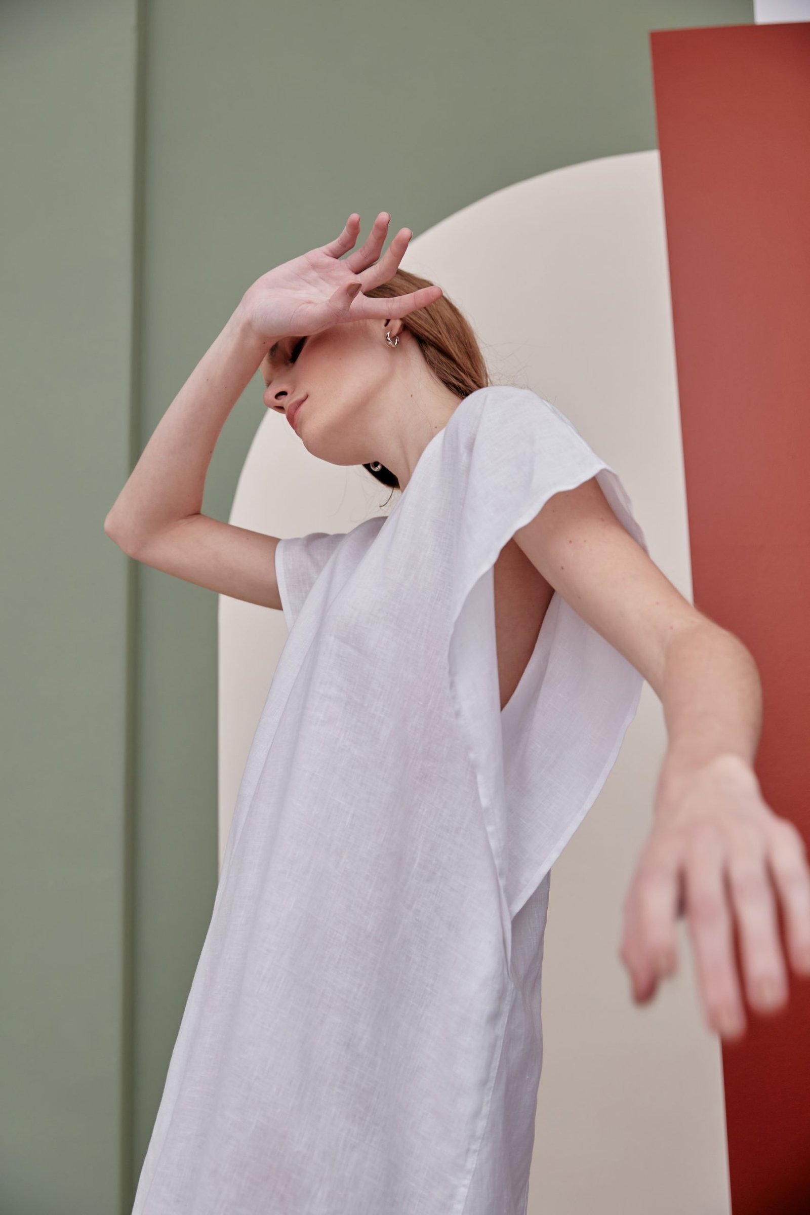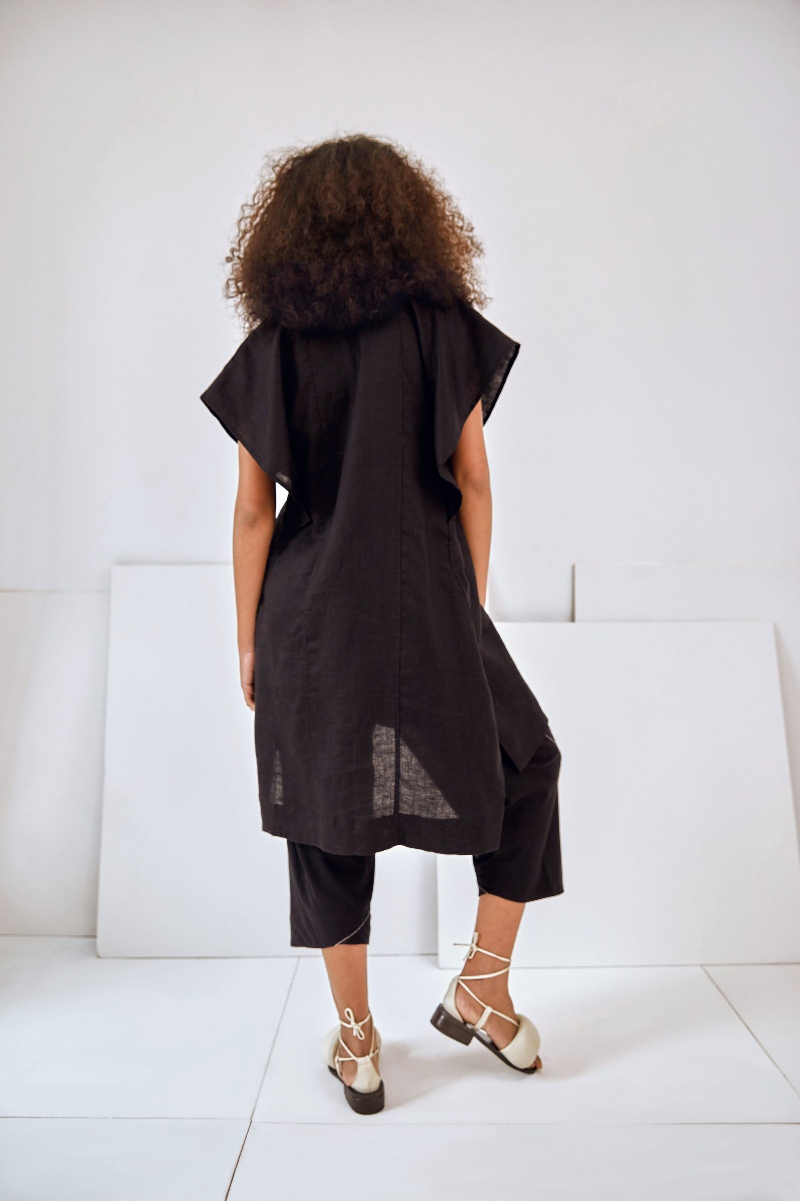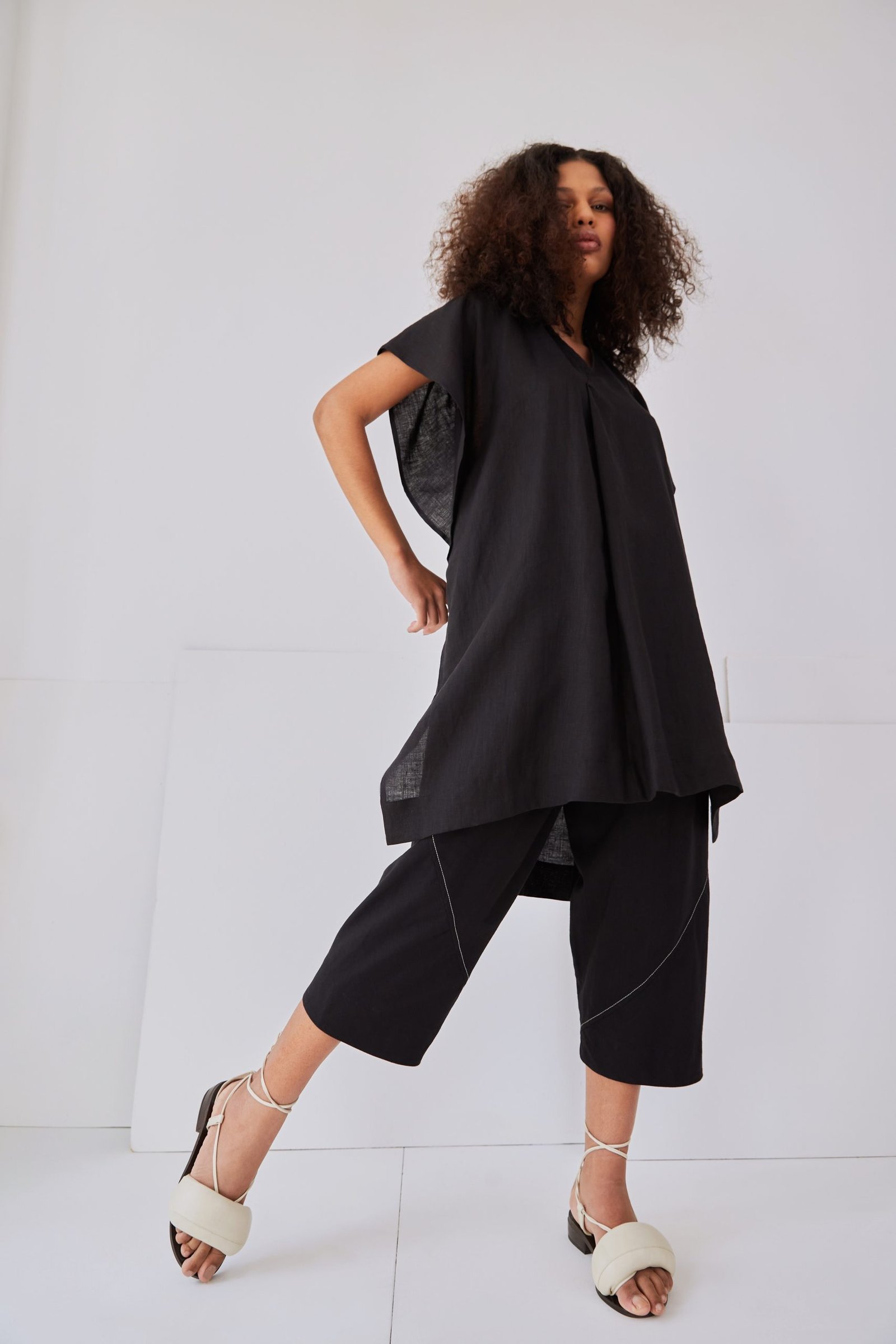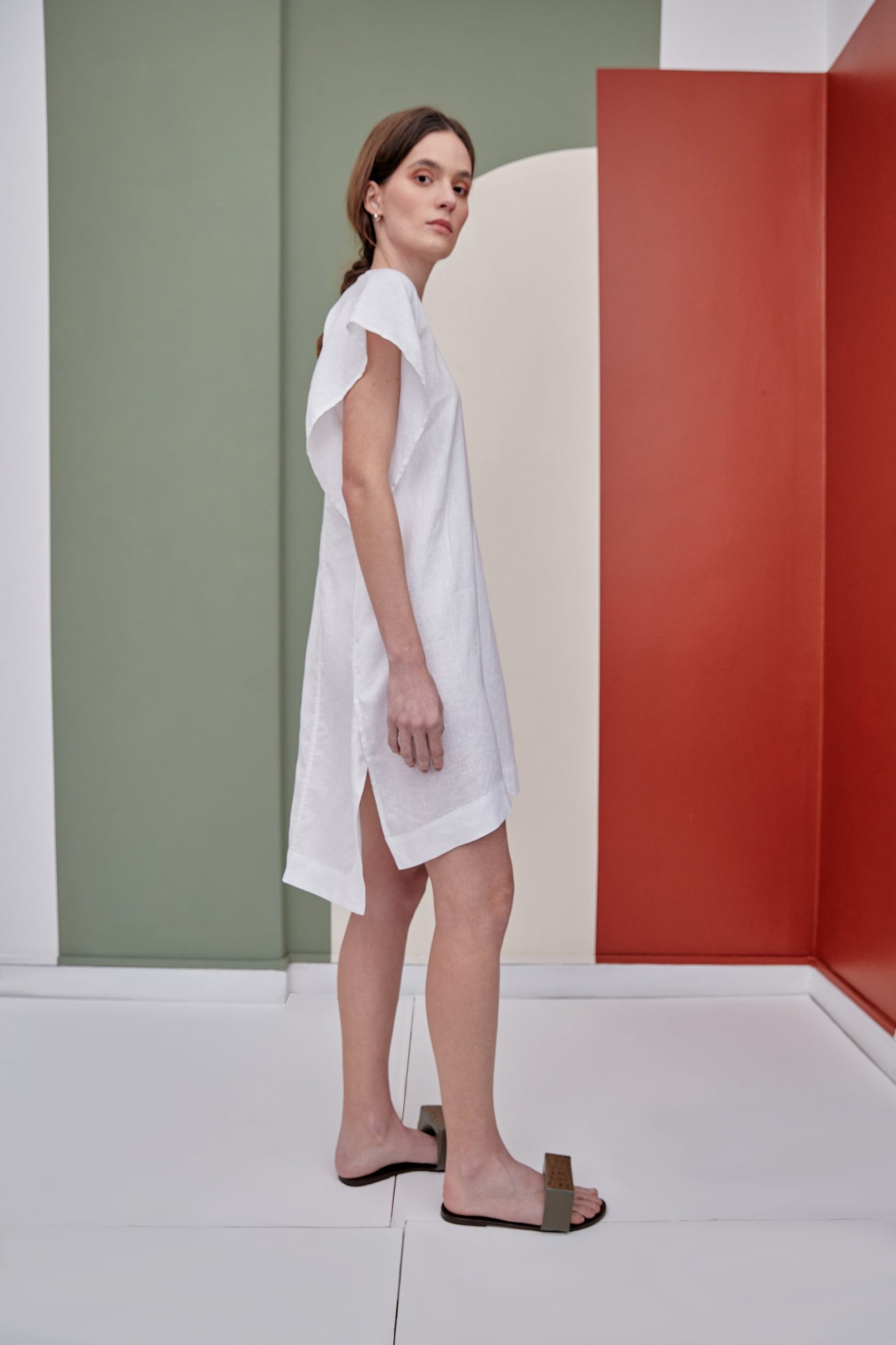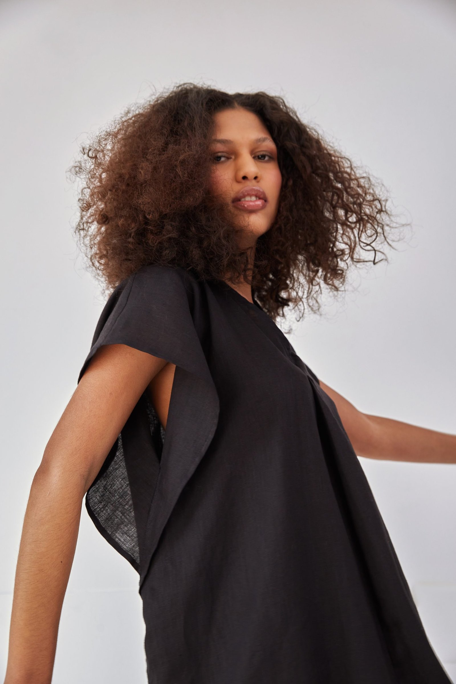 O vestido MARTHA é o nosso vestido túnica, em comprimento midi. Sua modelagem ampla foi construída como uma dobradura, dando destaque para as mangas e laterais sobrepostas. O tecido em 100% linho traz um caimento fluido, ideal para os dias que pedem mais leveza. Possui decote V e prega frontal.