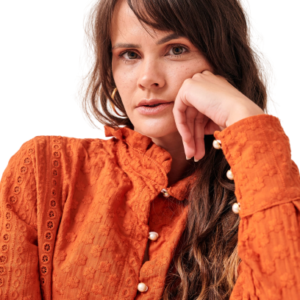 Camisa toda feita em Laise 100% algodão, com gola padre em detalhe frufru para trazer ainda mais delicadeza e acabamentos de aselhas e botões de pérola.